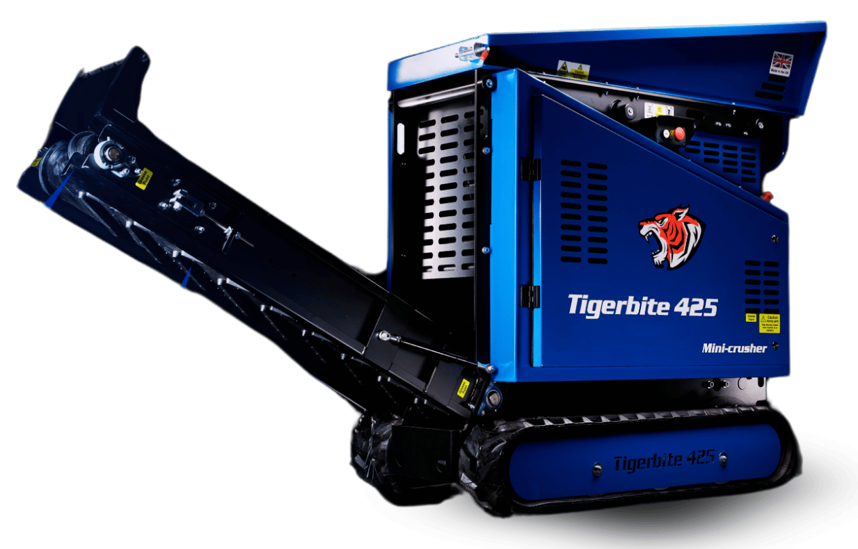 The Tigerbite 425 is a compact, powerful mini crusher designed for recycling construction waste such as bricks, concrete, and blocks into reusable aggregate. With a jaw aperture of 400mm x 250mm and an adjustable output range of 25mm to 120mm, it can process 6-8 tonnes per hour, making it ideal for builders, landscapers, and property developers.